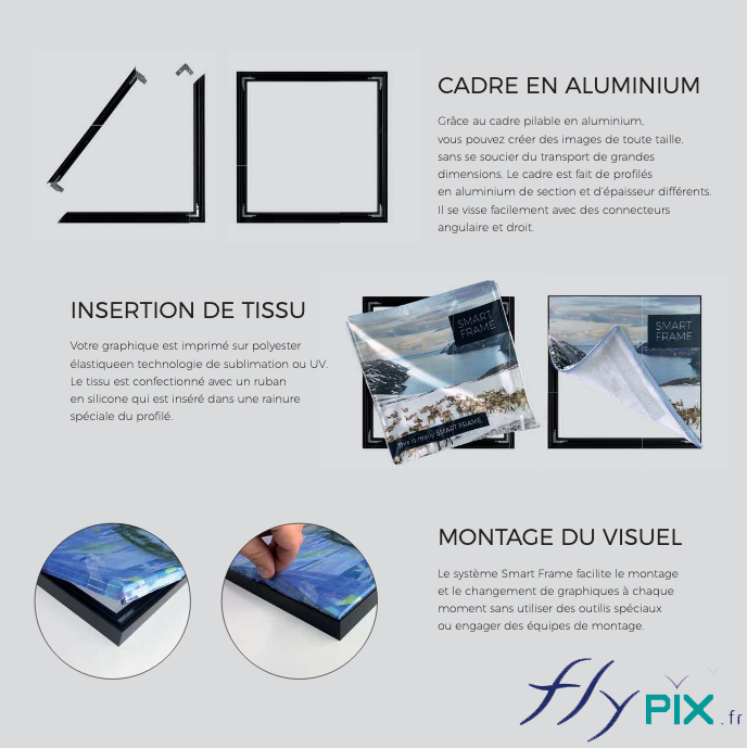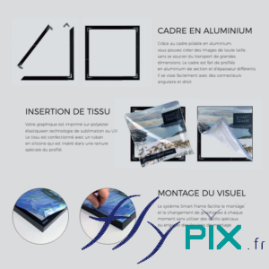 SMART FRAME – PLV Cadre en aluinium – Insertion tissu – Montage de visuel facile